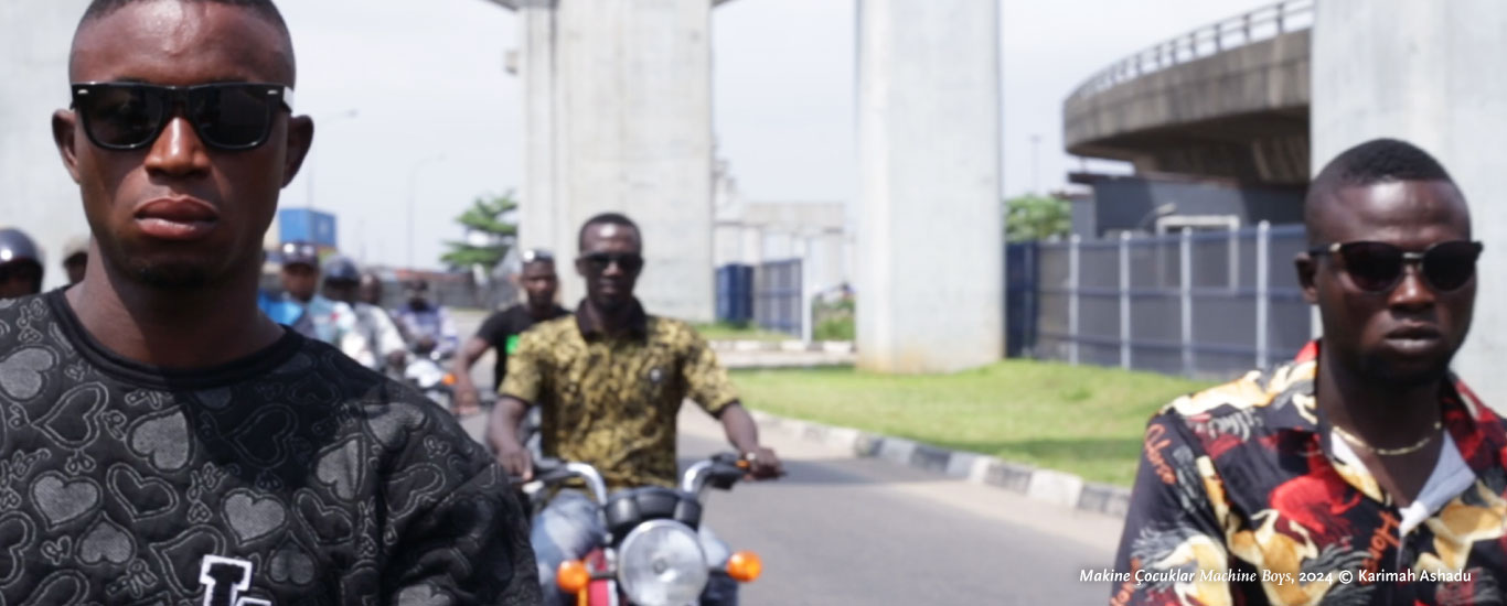 Karimah Ashadu (b. 1985, London) is a British-born Nigerian artist and film director living and working between Hamburg and Lagos. Her practice is concerned with labour, patriarchy and notions of independence pertaining to the socio-economic and cultural context of Nigeria and its diaspora. Ashadu’s work has been exhibited and screened at institutions internationally, including the 60th Venice Biennale (2024). The artist’s solo exhibitions include Karimah Ashadu: Machine Boys, Canal Projects, New York (2025); Prize of the Böttcherstraße in Bremen, Kunsthalle Bremen (2022); Karimah Ashadu: Plateau at Tate Modern, London (2022) and Secession, Vienna (2021). Group exhibitions include The Gatherers, MoMA PS1, New York (2025) and the 18th edition of Biennale de l’Image en Mouvement, Centre d’Art Contemporain Genève (2024).
