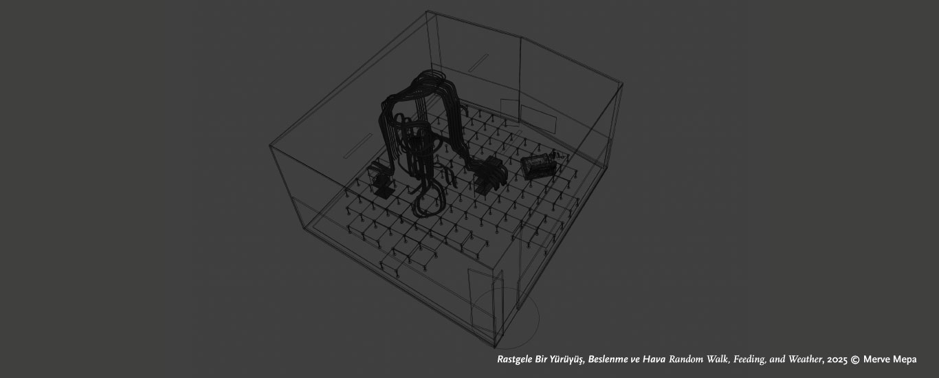 Merve Mepa (b. 1985, Kocaeli) lives and works in Istanbul. Her work focuses on the narratives and visual culture of labour and networked structures, through digital media and sculpture. She examines the evolving relationships between data flows, cultural knowledge systems and spatial organisation of digital infrastructure in everyday life. Group exhibitions include Ali Taptık, Merve Mepa, Aslı Uludağ, as part of the Salt Artistic Research and Production Grant Program, Salt Galata, Istanbul (2025); In Sync, OI_Focus, Noise_Media Art Vienna, Palais Festetics, Vienna (2024); OI_Emerge 01, Noise_Media Art, Alan Kadıköy, Istanbul (2024).
