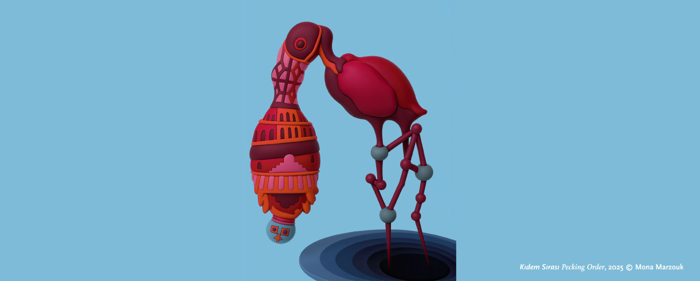 Mona Marzouk (b. 1968, Alexandria) is an artist currently based in Helsinki. In her paintings, sculptures and installations she looks into concepts, patterns and forms recurring across disparate histories and territories, reconfiguring them into abstract depictions where past and future converge. Her solo exhibitions include BARK, Gypsum Gallery, Cairo (2018); Renovabitvr (Renewal), Villa Romana, Florence (2015); The Bride Stripped Bare by Her Energy’s Evil, Baltic Centre for Contemporary Art, Gateshead (2008). Group exhibitions include Alexandria: Past Futures, Mucem, Marseille and BOZAR, Brussels (2022); Very Sustainable-Environmental Revelation, MOCA Yinchuan (2017); 36th EVA International, Limerick (2014).
